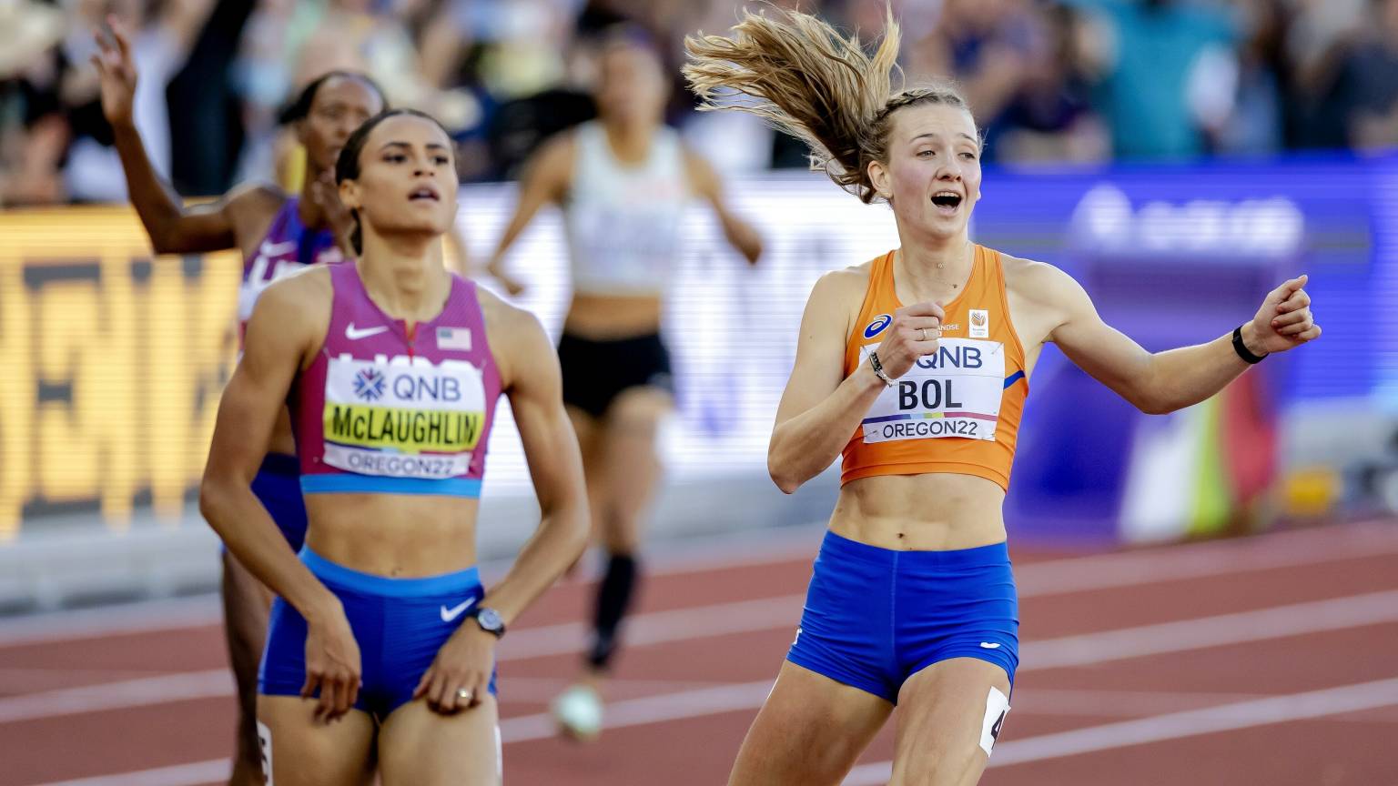 . Ontzag heb ik niet meer. Ze deed dat met een tijd van 5227 seconden achter de Amerikaanse thuisfavoriet Sydney McLaughlin. Ik ga tegen haar battelen. Femke Bol heeft zich in de nacht van dinsdag op woensdag met speels gemak geplaatst voor de halve finales van de 400 meter horden op de WK in Eugene.